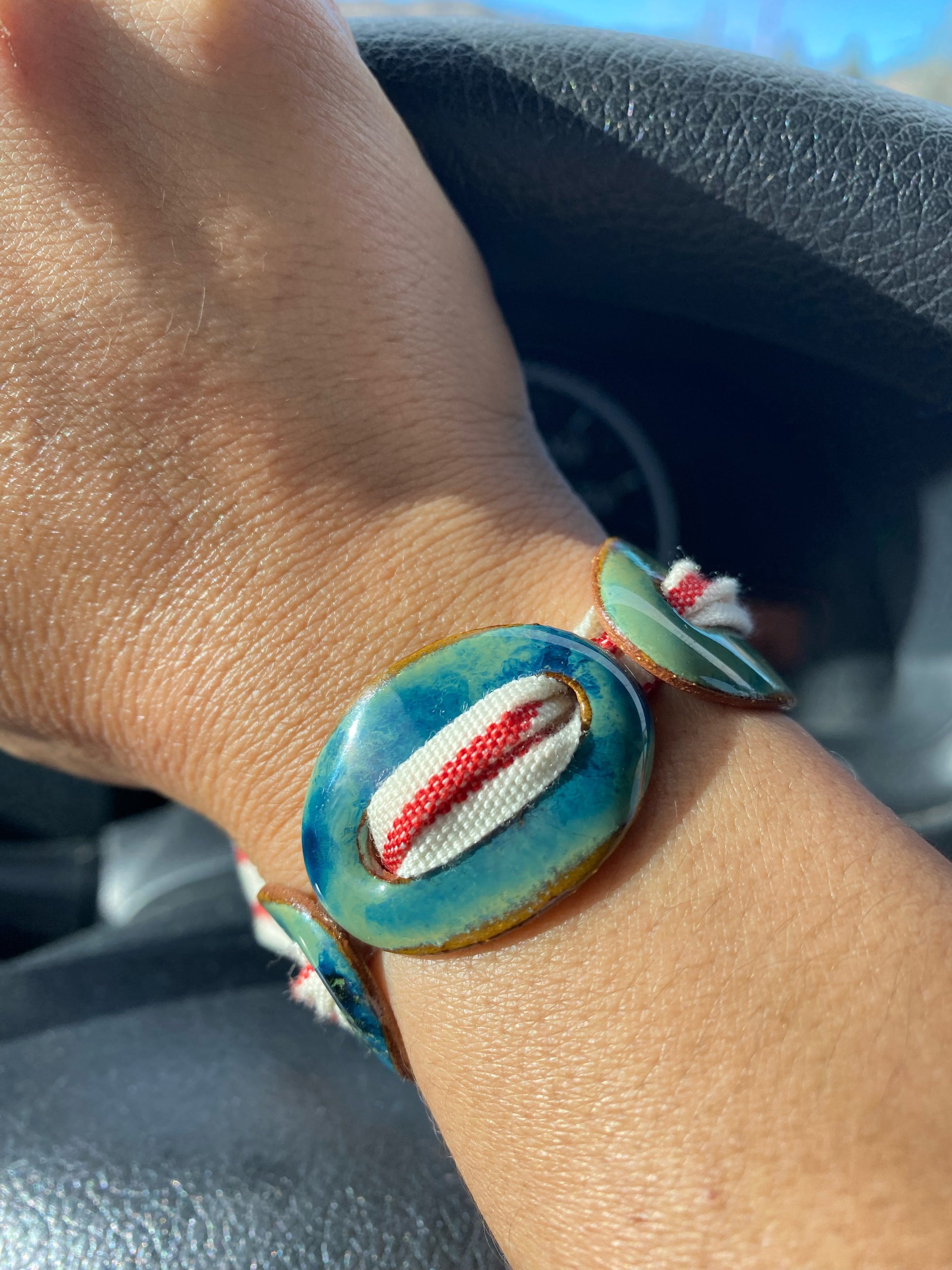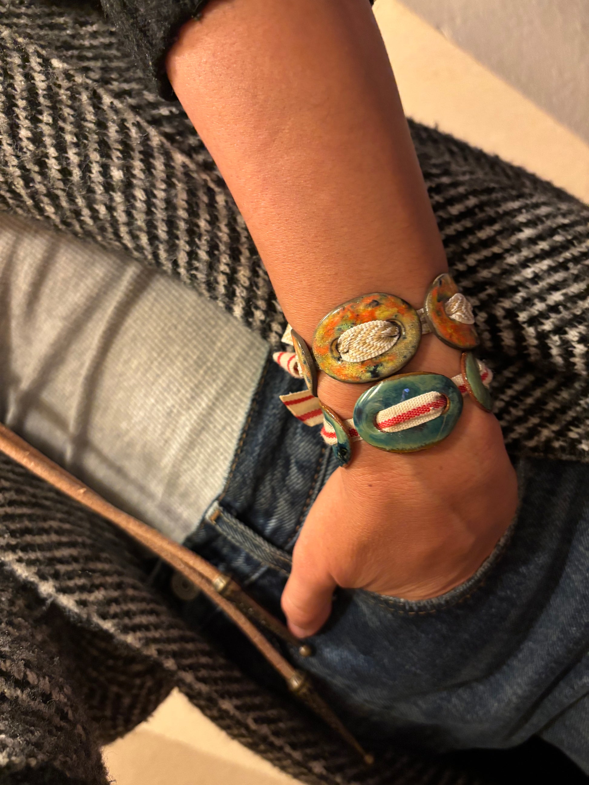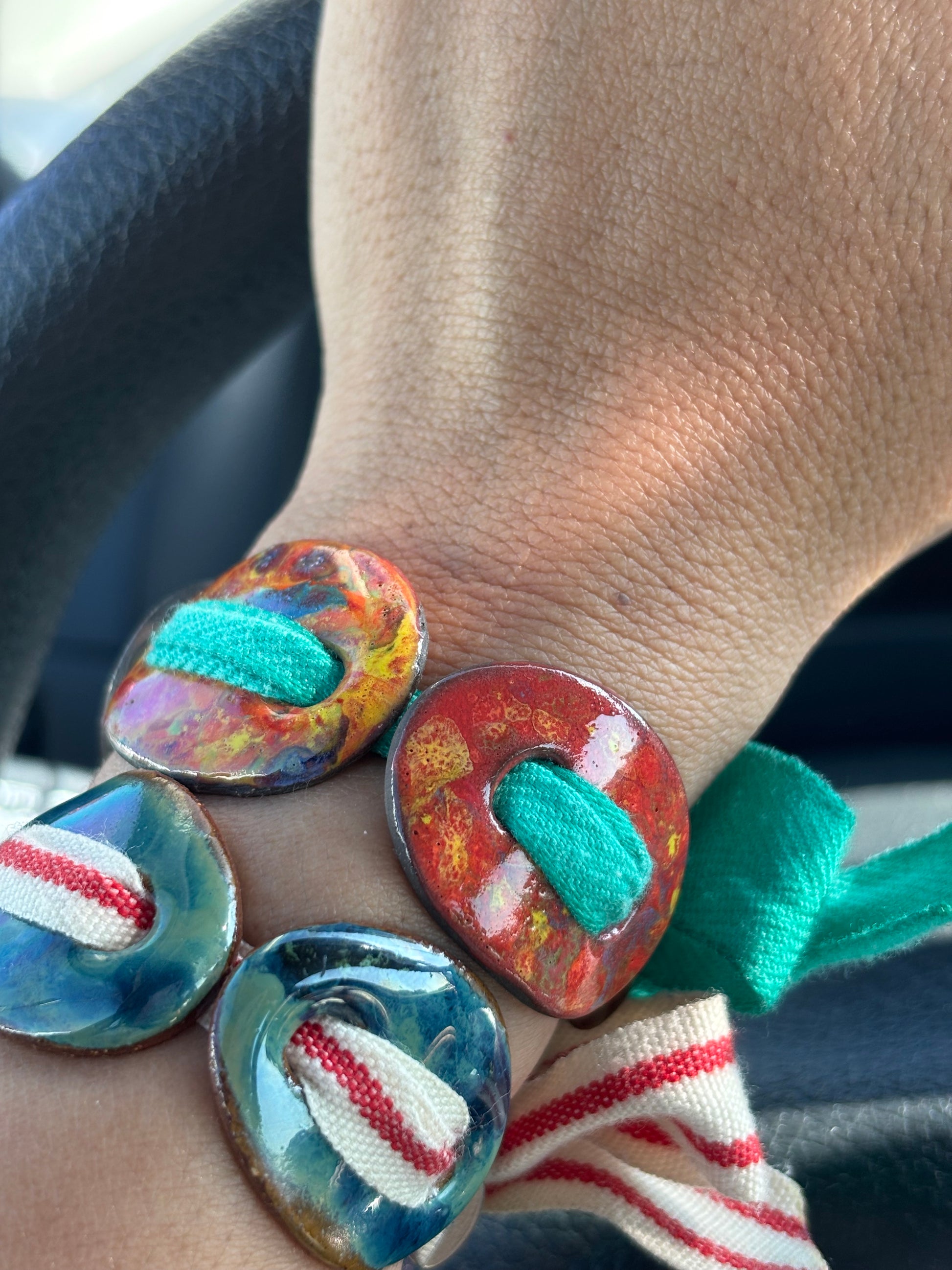Adjustable ceramic and ribbon bracelets. Make your very own combination by just changing the ribbon. Unlimited possibilities.